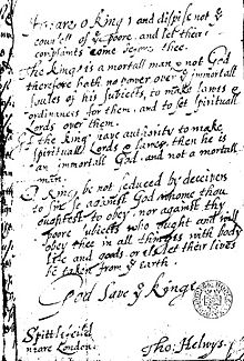 A Short Declaration on the Mystery of Iniquity, includes a critique and apocalyptic interpretation of the Papacy as well as criticisms of Brownism and Puritanism, and is possibly the first ever English book defending the principle of religious liberty. For Helwys, religious liberty was a right for everyone, even for those he disagreed with.