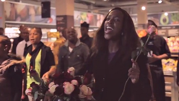 The flashmob had been planned with the choir as part of a supermarket publicity campaign but they changed the song from ‘I Feel Good’ to ‘Asimbonanga’ due to Mandela’s death.