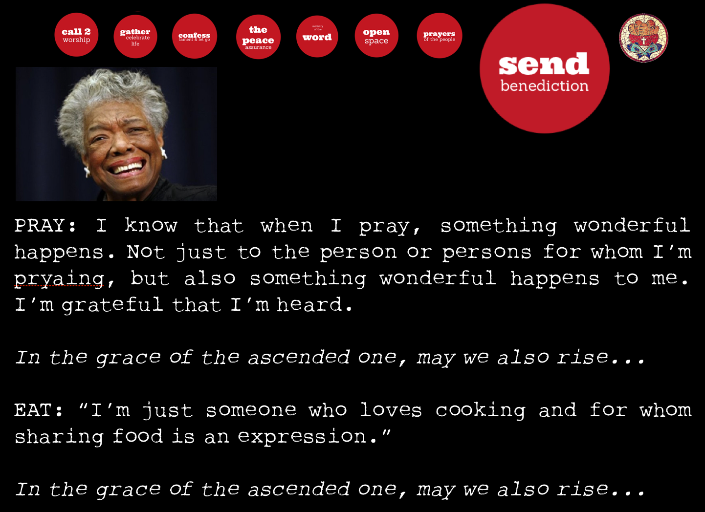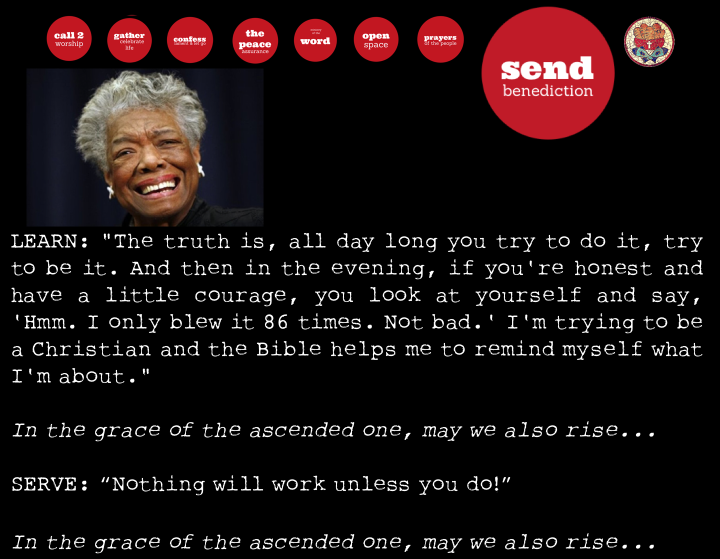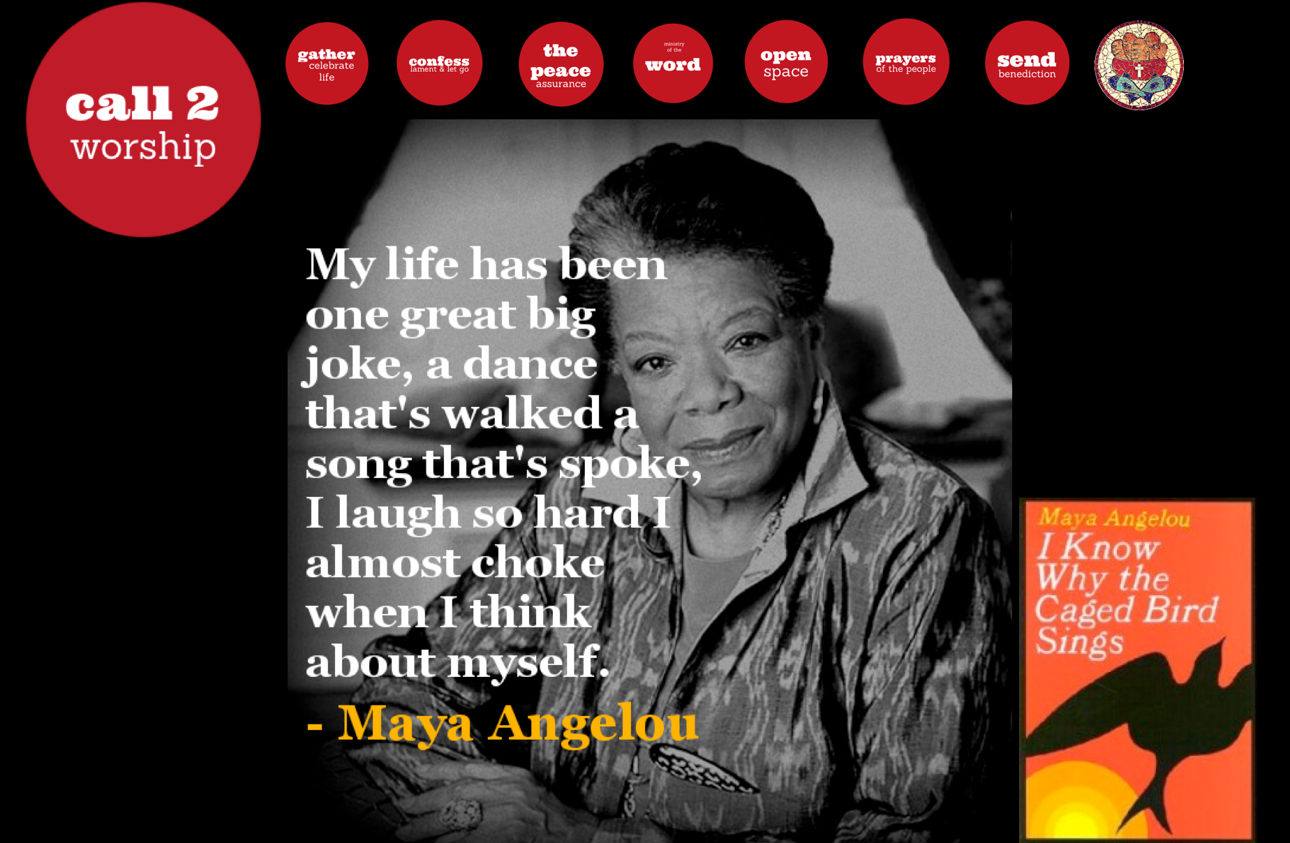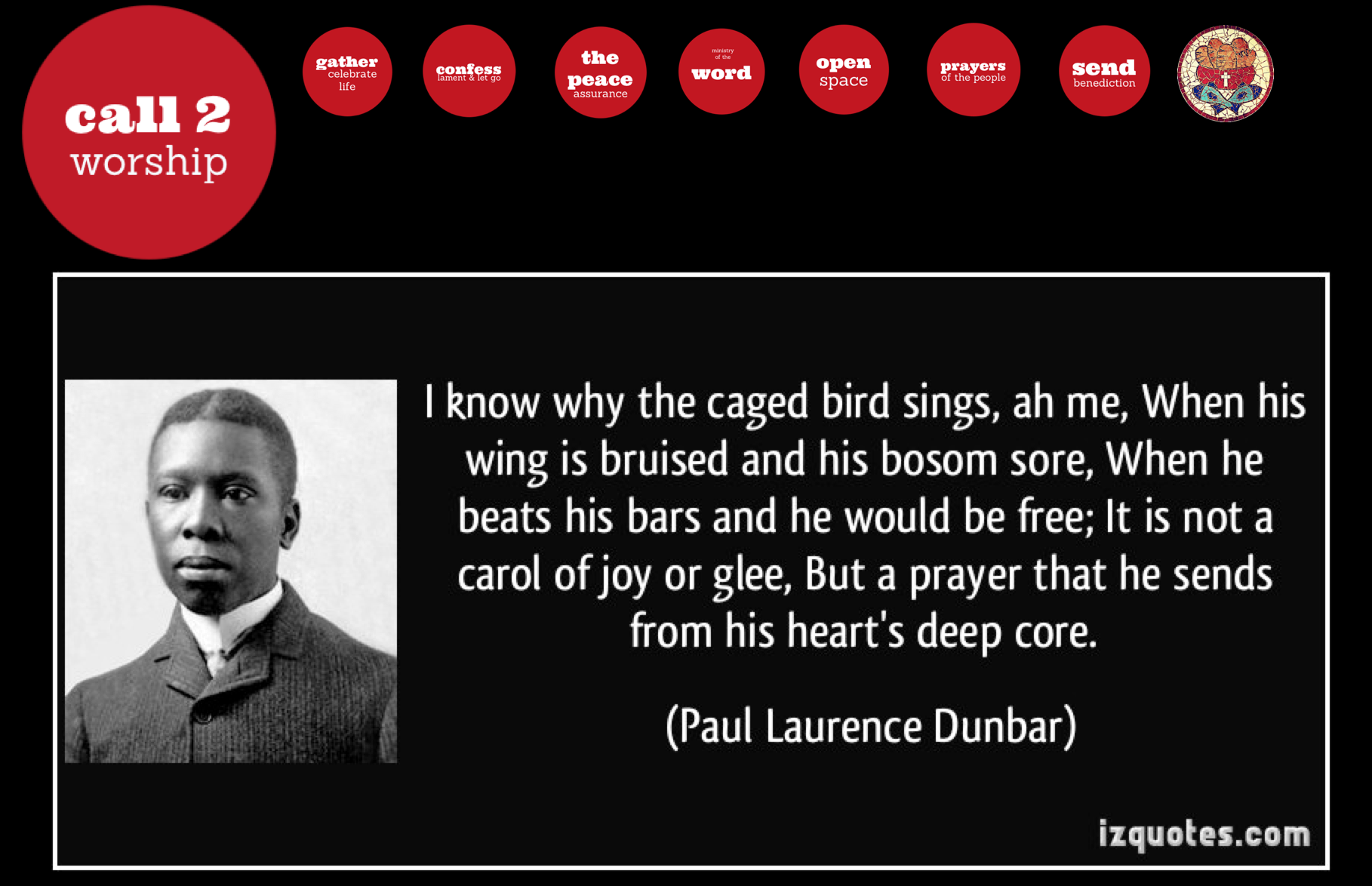 We used these slides and video to make some connections between the life of Maya Angelou (who died this week); Paul Dunbar and Paul the Apostle… that we may hear the voice of caged birds singing the hope of the ascension from the places of enslavement in our world and in our lives… making captivity itself a captive and giving us gifts…